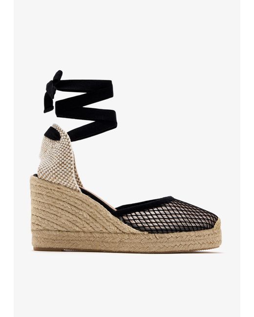 Lift your new-season looks with these Maria wedge espadrilles from Luna. Crafted from mesh, they are enriched with contrast backs and chic braided wedge heels, making them your go-to for effortless warm-weather styling. This style is designed for a narrow fit. Color: black