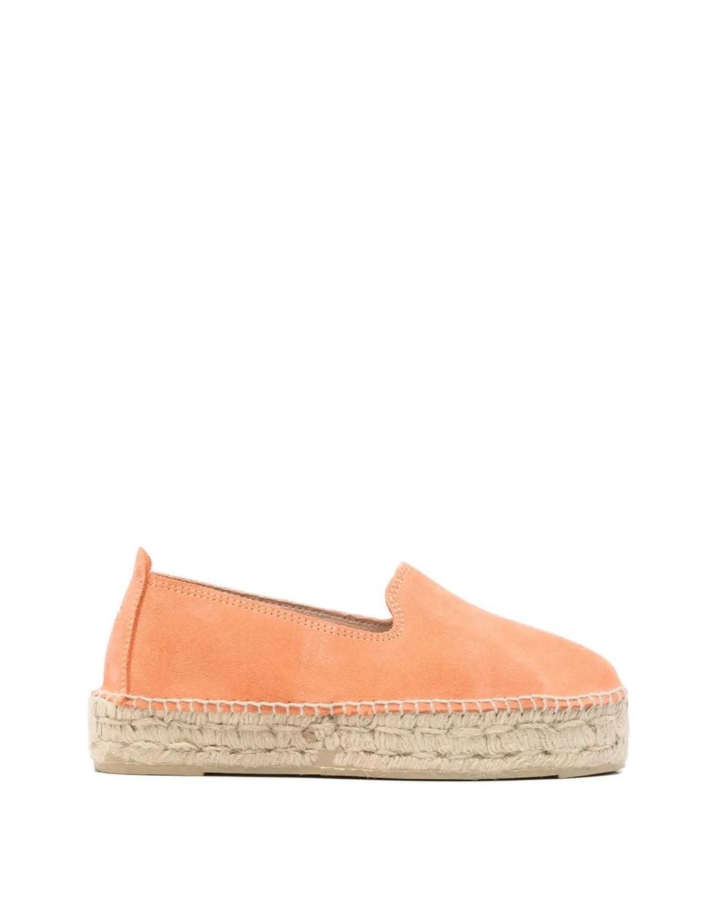 Sunset orange slip-on style platform sole woven midsole Size: 36. Gender: Female. Material:Calf Suede/Calf Suede/Rubber. Color: pink