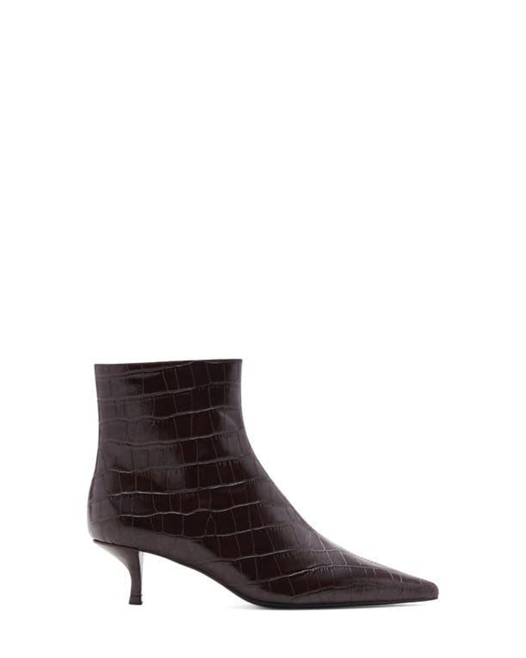 Allover croc embossing enhances the luxe style of this pointy-toe bootie that's the perfect way to elevate any look. Color: brown