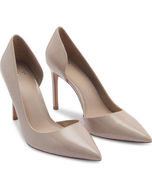 A daring side cutout creates a half d'orsay silhouette on a pointy-toe pump rendered in smooth faux leather and lifted by a svelte stiletto heel. Color: gray