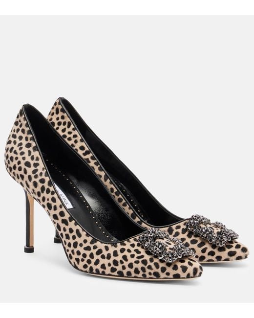 - Hangisi 90 Leopard-Print Calf Hair Pumps