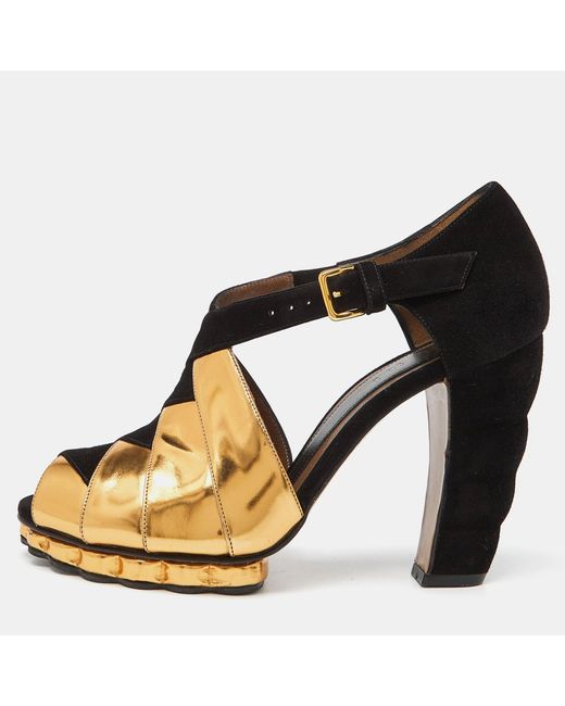 - Suede And Leather Peep Toe Platform Sandals