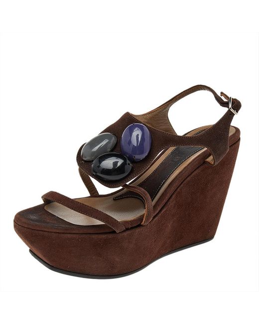 Women's Brown Suede Embellished Wedge Platform Ankle Strap Sandals
