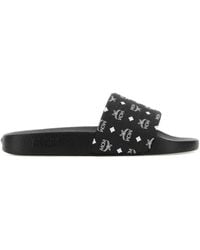 MCM Women's Brown Monogram-Logo Slides