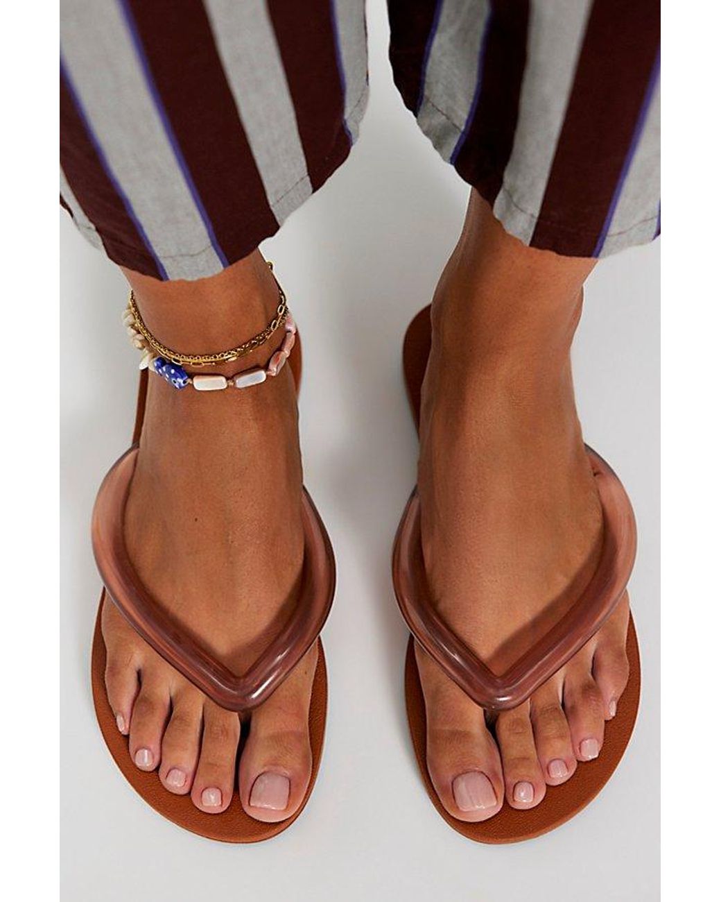 Simple, versatile, and so fun, these flip flops from Melissa feature air bubble thong straps, a comfortable insole, and a textured outsole for a beach-ready pair. * PVC air bubble uppers * Backless flip flop * Water-resistant design * Signature Melissa bubblegum scent Melissa Airflow Flip Flops at Free People in Brown/Blue, Size: US 6
