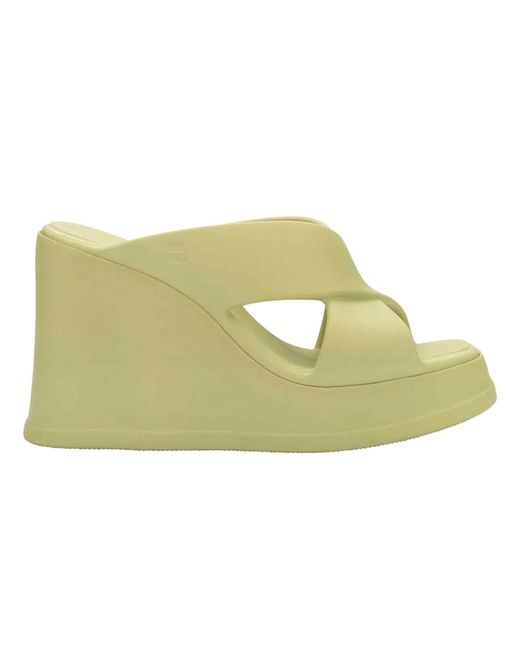 Melissa Free Vibe is the perfect match between attitude and well-being. With wedge heels and modern design, this Free Family model combines lightness, style and comfort in every detail. The structure with EVA technology combined with the new Biperformance technology guarantees a feeling of softness and security with every step, while the X-shaped upper offers stability and a striking look. Ideal for those who love practicality with personality, the Melissa Free Vibe is versatile enough to accompany you from the casual to the most daring look, always with the lightness that only Melissa delivers. Crafted from the innovative Melflex® PVC plastic this piece is ultra-lightweight. The upper is made of 100% PVC, the insole of laminated PVC, and the sole of 100% EVA. Easy care item that just needs a wipe clean. Furthermore, they are entirely recyclable, aligning with eco-conscious values Color: green
