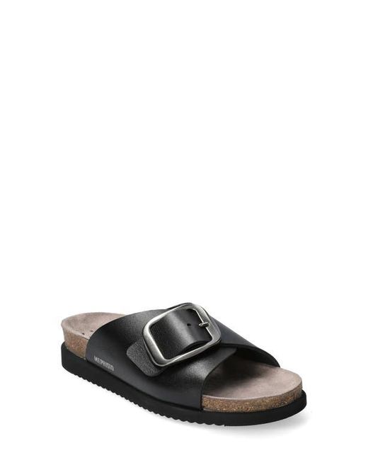 Full-grain leather straps with an adjustable buckle top a contoured footbed and flexible sole on this weekend-ready slide sandal that reduces shock and relieves joint pressure. Color: black