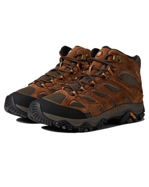 Waterproof membrane seals out water and lets moisture escape Pigskin leather and mesh upper 100% recycled laces and webbing Bellows tongue keeps out debris Protective toe cap 100% recycled mesh lining Kinetic Fit ADVANCED removable contoured insole with reinforced heel cushioning for medium support Molded nylon arch shankLightweight EVA foam midsole for stability and comfort Vibram TC5+ rubber sole Merrell is focused on merging performance, styling, and comfort to empower all people to confidently explore the outdoors Merrell Air Cushion in the heel absorbs shock and adds stability.