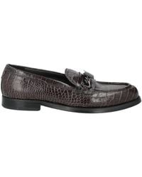 Go to YOOXLeather, studs, brand logo, crocodile-print, leather lining, round toe, flat, leather sole, contains non-textile parts of animal origin, slippers. Leather. Color: black