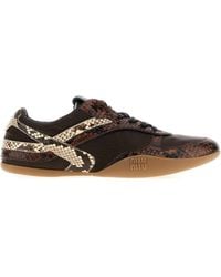 '- Leather and technical fabric with python print inserts - Two-tone lace-up closure - Rubber sole - Embossed MIU MIU logo on the side - Rounded toe - Tongue with logo appliqué - Logo appliqué on the heel Made in