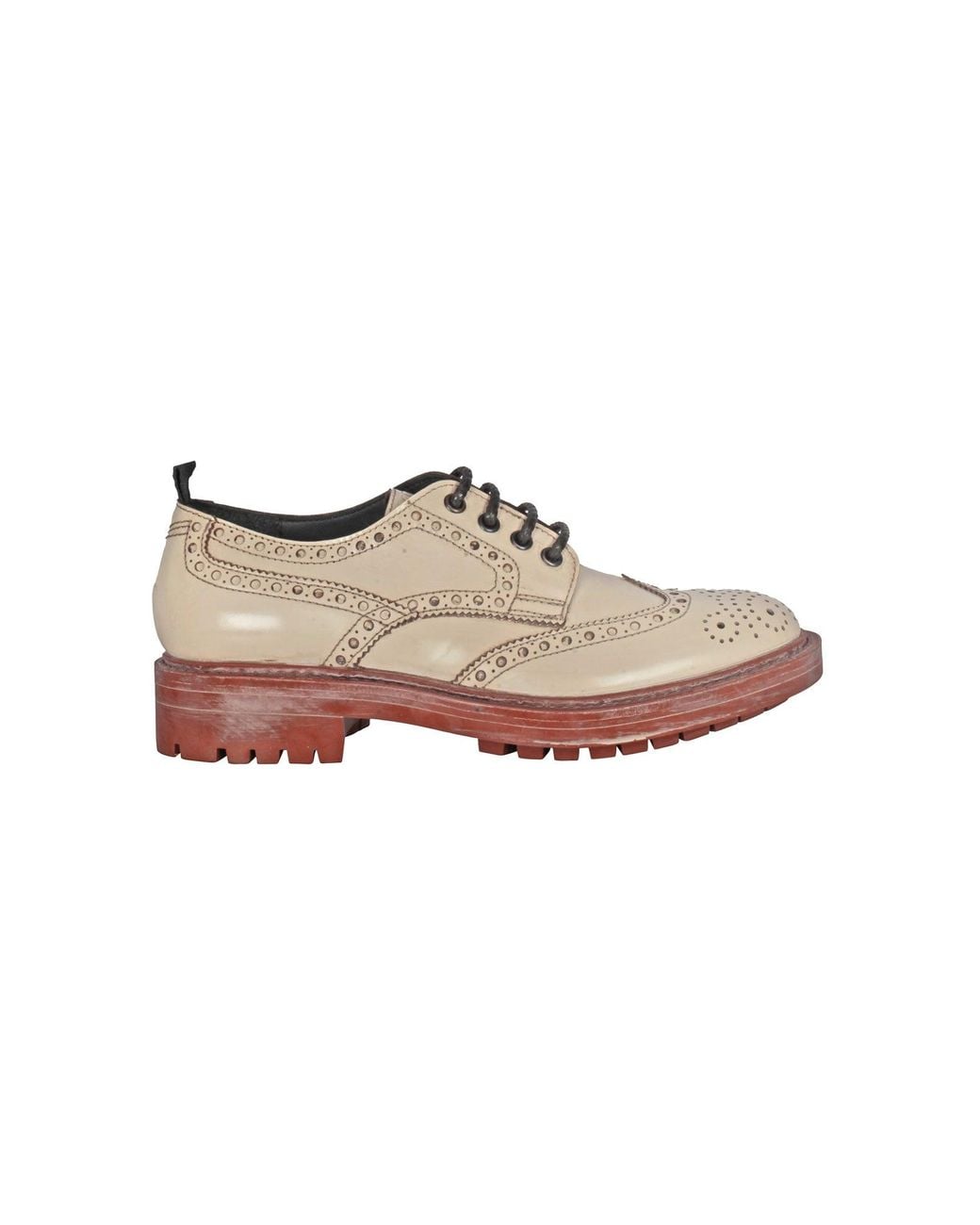 Low leather shoe. Round toe. Four-hole closure with round laces. Embossed logo on the tongue. Swallowtail motif. Fabric puller on the back. Leather lining and insole. Vintage effect skirt sole with lug sole. Heel height: 3.5 cm. Composition: 100% leather. Fit: regular. Made in Italy. Bag to protect and transport the shoes. Color: multicolor