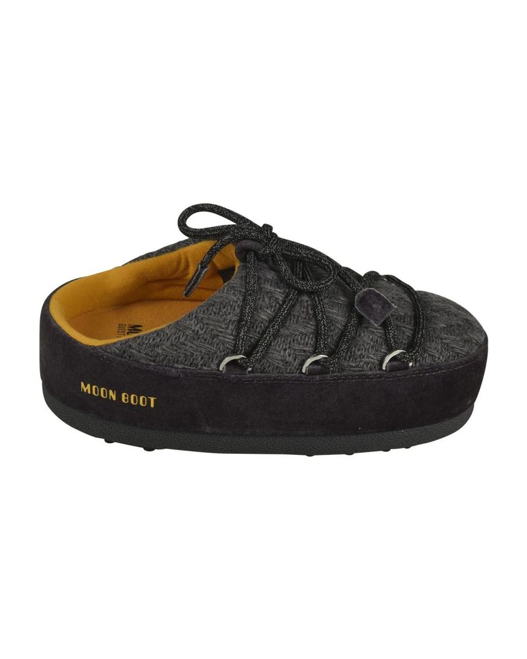 Moon Boot EVX Knit Mules pair a wool-blend knitted upper with a chunky rubber sole for a cozy, street-ready mule. The collaboration design adds lace-up detailing and a limited-edition logo for elevated everyday wear. Key attributes: Gray | Gray | Wool-blend | Adaptive foam lining that molds to the foot | Lightweight thermoplastic midsole for cushioning | Slip-on mule construction | Metal eyelets | Multisize foam lining | Thermoplastic mid sole | Thermoplastic rubber tread sole | Ambidextrous design | Knitted upper | Lace-up detail | Criss-cross tubular laces | Round toe | Chunky rubber sole | Limited-edition collaboration logo | Dimensions & fit: Runs small — we recommend sizing up (for example, EU 38 → EU 39–41). | Multisize foam lining relaxes after a few hours and moulds to the foot for a more secure fit. | Composition & care: Upper: 49% polyester, 26% acrylic, 25% wool | Lining: 100% polyester | Sole: 100% thermoplastic rubber | Use a soft, dry brush to remove dirt. Spot clean with a soft, damp cloth and mild detergent. Brush midsole and outsole with mild detergent and water. Allow to dry at room temperature. Do not use waterproof, water-repellent or spray-on shoe treatments. Color: black
