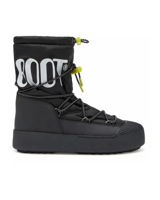 Moon Boot Mtrack Polar Boots combine hiking-boot performance with après-ski comfort. Built for winter use, they feature a water-repellent membrane and a grippy tread for stability on slippery surfaces. Key attributes: Black | Nylon | Water-repellent membrane | Fully sealed seams | Insulated | Non-slip thermoplastic rubber sole | Fast lacing system with toggle adjuster | Drawstring top with toggle | PVC heel counter and trim | Rubber toe cap | Slip-on design | Logo print | Round toe | Silver-tone eyelets | Criss-cross tubular laces | Dimensions & fit: IT size scale | If between sizes, consider taking one size up | Composition & care: Upper: 77% nylon, 23% PVC | Lining: 64% polyester, 36% nylon | Sole: 100% thermoplastic rubber | Wipe clean with a damp cloth; do not machine wash.
