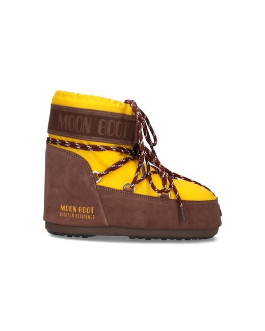 Moon Boot x Guest In Residence 'Icon Low' boots in yellow fabric with round toe, lace-up closure, embossed logo detail on the side, contrast leather trim, rubber sole. - Sole: 100% rubber Color: yellow