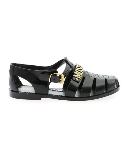 Black rubber sandals with golden logo. Beach sandals in rubber. Color: black. Front logo. Adjustable closure with side buckle. 100% Pvc. Rubber sole. Made in Italy.