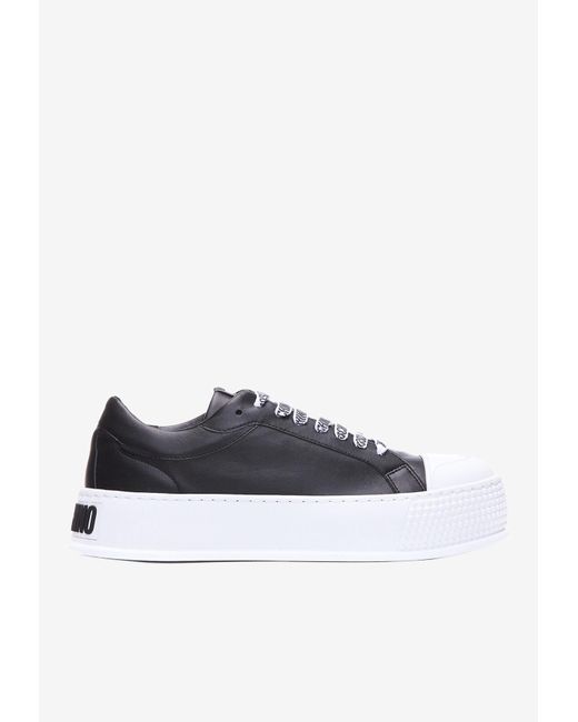 Material: 100% calfskin. Round toe. Branded lace-up closure. Logo patch on the tongue. Rubberized logo on the heel. Sole with bubble wrap and stripes details. Rubber sole Color: white