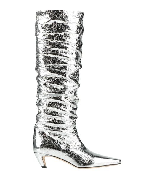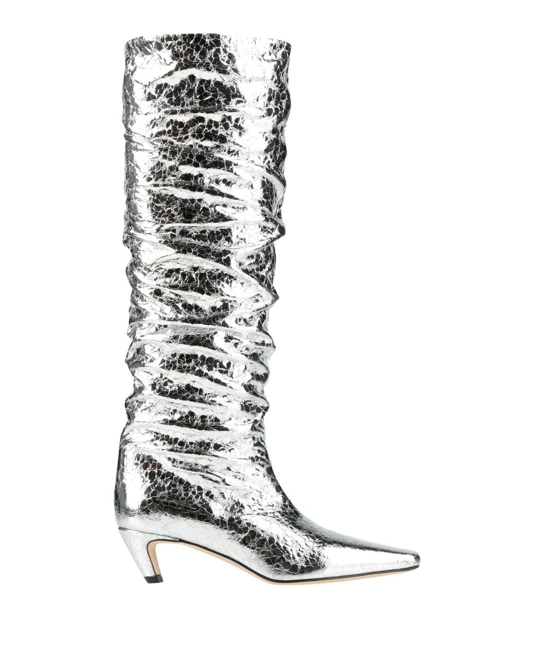 Boots, leather, metallic, solid color, no appliqués, leather lining, square toe, cone heel, leather/rubber sole, contains non-textile parts of animal origin , Color: Silver , Size: 5