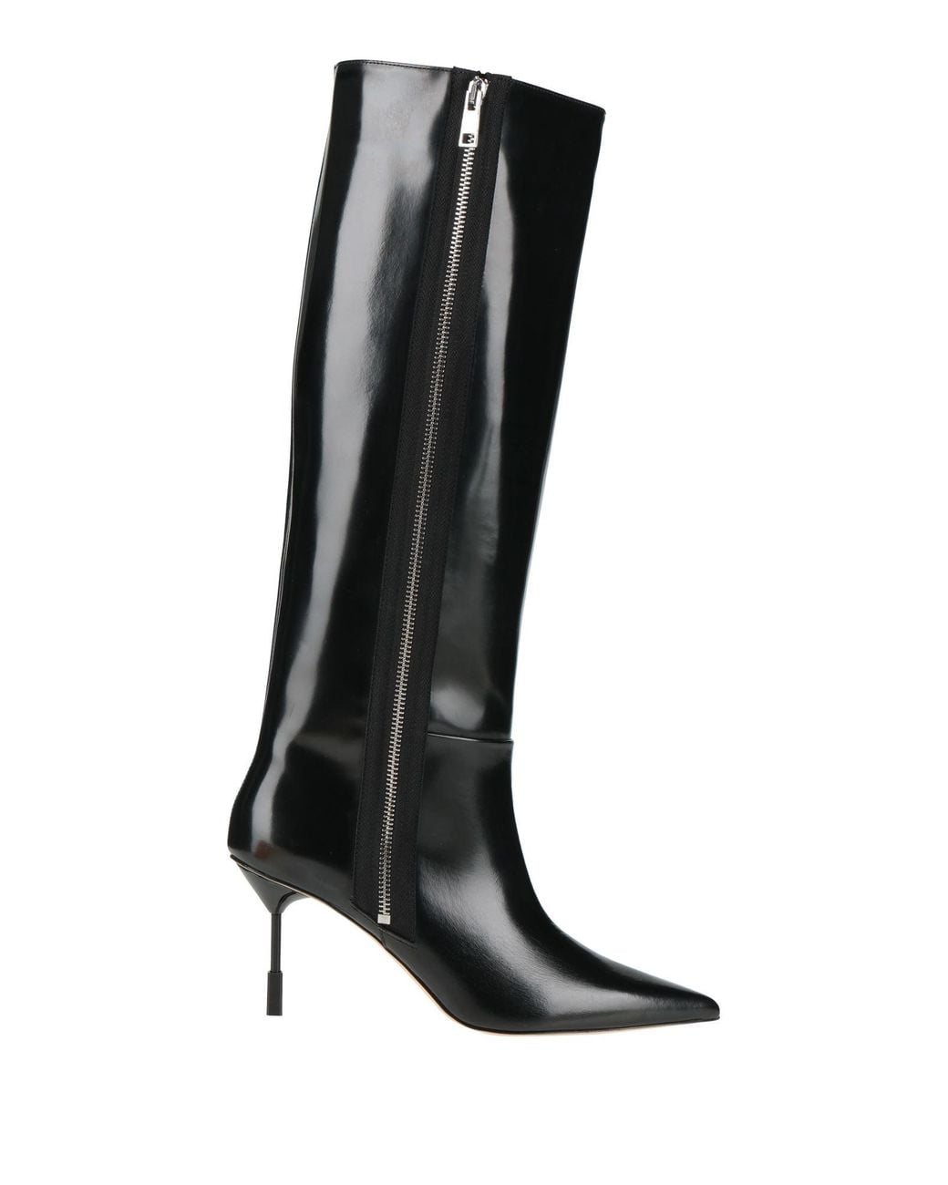 Boots, glossed-leather, solid color, no appliqués, leather lining, zipper fastening, pointed toe, spike heel, leather sole, contains non-textile parts of animal origin , Color: Black , Size: 10