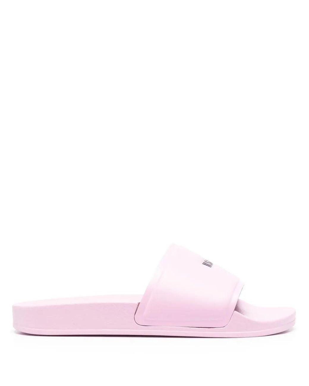 Rose pink logo print to the front open toe flat rubber sole Size: 35. Gender: Female. Material:PVC/Rubber/Rubber. Color: pink
