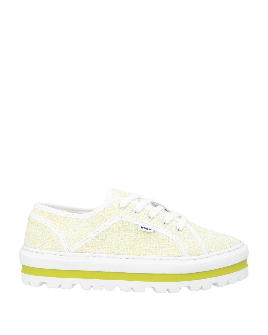 Bouclé, metallic, brand logo, two-tone, fabric inner, lace-up, round toe, flat, flatform, flatform sneakers , Color: Acid green , Size: 10