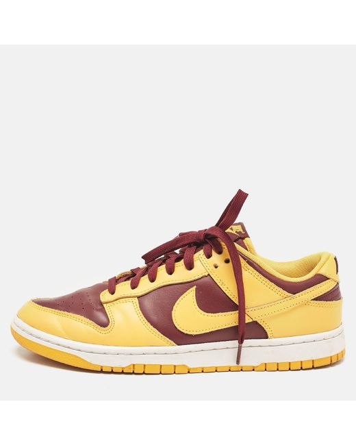 Men's Yellow S/Burgundy Leather Dunk Retro Arizona Lace Up Sneakers