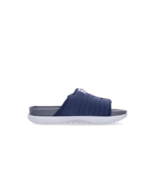 Elevate your summer style with these Nike Sliders for men. Featuring a rubber mule with a padded mesh band, quick lacing, and a dual-density foam midsole footbed. The rubber sole provides increased traction on wet surfaces, while the Nike logo is printed on the band and the Swoosh logo on the sole. Color: blue