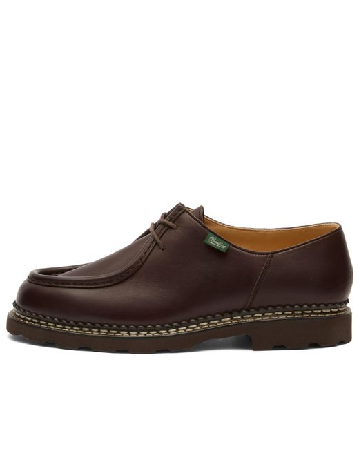 A shoe that needs no introduction yet always earns the spotlight — Paraboot Michael. First released in 1945, this moc‑toe Derby is defined by its two‑eyelet silhouette, rich leather and a rugged rubber sole built to handle the elements. Handmade in France using the Norwegian welt technique, it’s designed to last and be re-soled for decades of wear. Leather Upper, Leather Lining, Piped Seam, Lace Closure, 2 Eyelets, Norwegian Welt Construction, Rubber Sole, Handmade in France, Style Code: 715612, Shop All Men’s Paraboot Brogues, Shop All Men’s Brogues, Please note, due to the use of natural fats, oils and waxes in the tanning process of Paraboot’s footwear, a white haze or ‘bloom’ can appear on the surface of the leather after storage. This can be brushed back into the leather with a shoe brush. - Paraboot Men's Michael in Café, Size UK 10 Color: brown