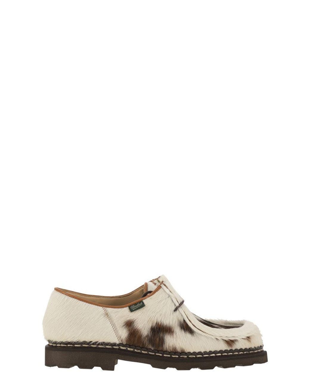This iconic model, created by the second generation richard-pontvert, was marked by the birth of michel richard in 1945. Renowned throughout the world, it has stood the test of time, adapting to each generation and each style. Please note that, as each leather is unique, the appearance of the marks and colors may vary from one pair to another. - generous fit with rounded toe - made in france - norwegian stitching, leather lining - natural rubber sole designer id: 1866 63 heel height: 3 cmSpecificationValueSeasonFW25CompositionUPPER: GOAT HAIR LINING: LEATHER SOLE: NATURAL RUBBERColorNATURALColor Code63Made InFRANCEISOFRDepartmentMenSectionSHOESSubsectionMOCCASINSSize InformationSHOES UKSize CodeUK Color: multicolor