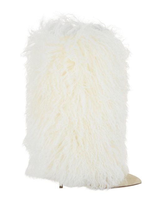 Women's White Furry Mid-Calf Boots