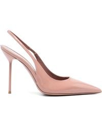 Go to BalardiLidia 105mm slingback pump Made in Italy Highlights Powder pink elasticated slingback strap leather sole branded footbed high stiletto heel Composition Exterior: 100% patent calfskin Sole: 100% calfskin Lining: 100% calfskin ID: PX913XVN01 Product measurements by size (IT) HEEL 10.5 cm Color: pink