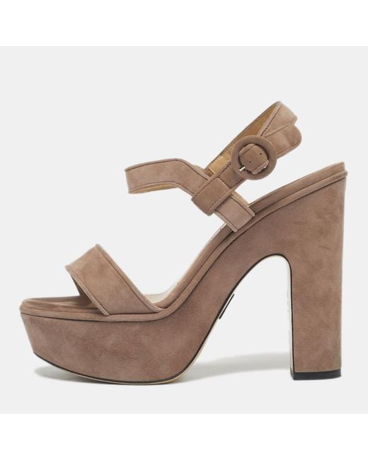 These Paul Andrew Stanton sandals in beige suede feature a delicate ankle strap and sleek silhouette for a refined look. Lightweight and versatile they transition effortlessly from daytime outings to evening dinners. A timeless neutral for every closet. Color: brown