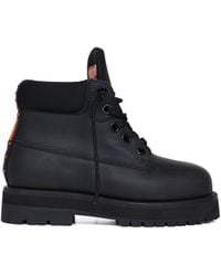 Go to SSENSEAnkle-high buffed leather boots in black. · Lace-up closure · Padded neoprene tongue and collar · Concealed rubberized graphic appliqué at tongue · Logo-embroidered pull-loop and trim at heel counter · Neoprene lining
