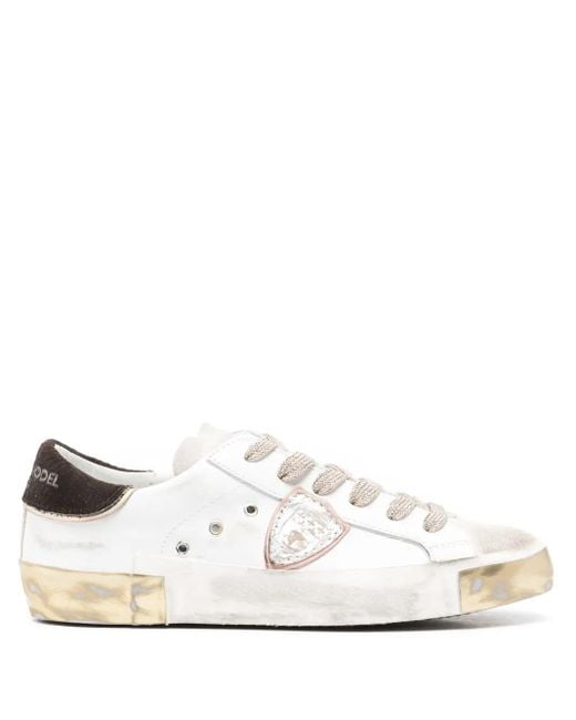 White calf leather smooth grain suede panelling distressed finish logo patch at the tongue logo patch to the side branded heel counter metal eyelet detailing front lace-up fastening round toe branded leather insole flat rubber sole Size: 35. Gender: Female. Material:Leather.