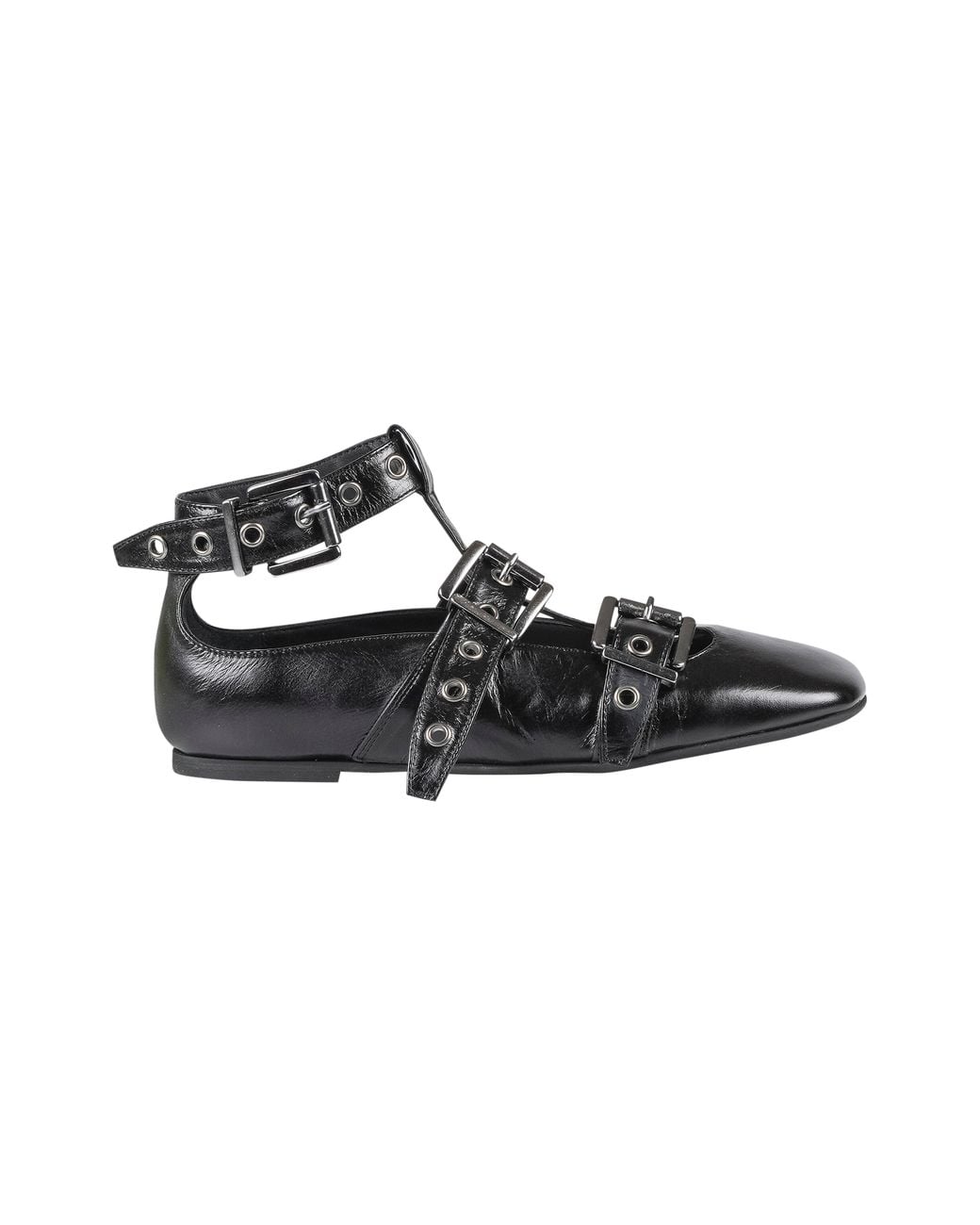Leather Sall dancers with buckles. Team bet. Three adjustable straps with metal buckle. Internal raised in padded leather. Rubber sole. Heel height: 1 cm. Composition: 100% leather. Calzata: regular. Made in Italy. Color: black