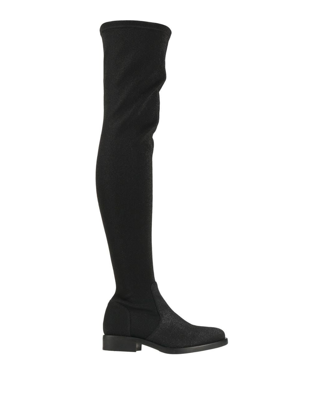Boots, jersey, lamé, solid color, no appliqués, zipper fastening, round toe, block heel, leather lining, rubber cleated sole, contains non-textile parts of animal origin , Color: Black , Size: 5
