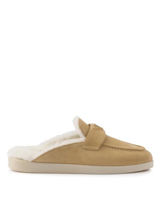 Shearling-Lined Suede Mules - Natural