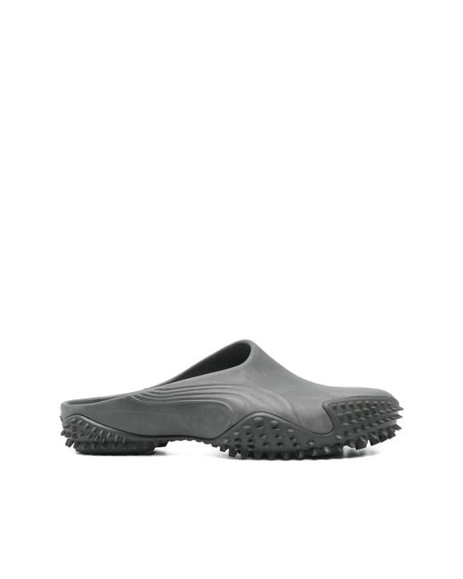 Elevate your style with these Puma gray slip-on mules for men featuring a sculpted sole, studded details, curved toe, and flat heel. Made with 100% rubber outer, lining, and sole composition. Color: gray