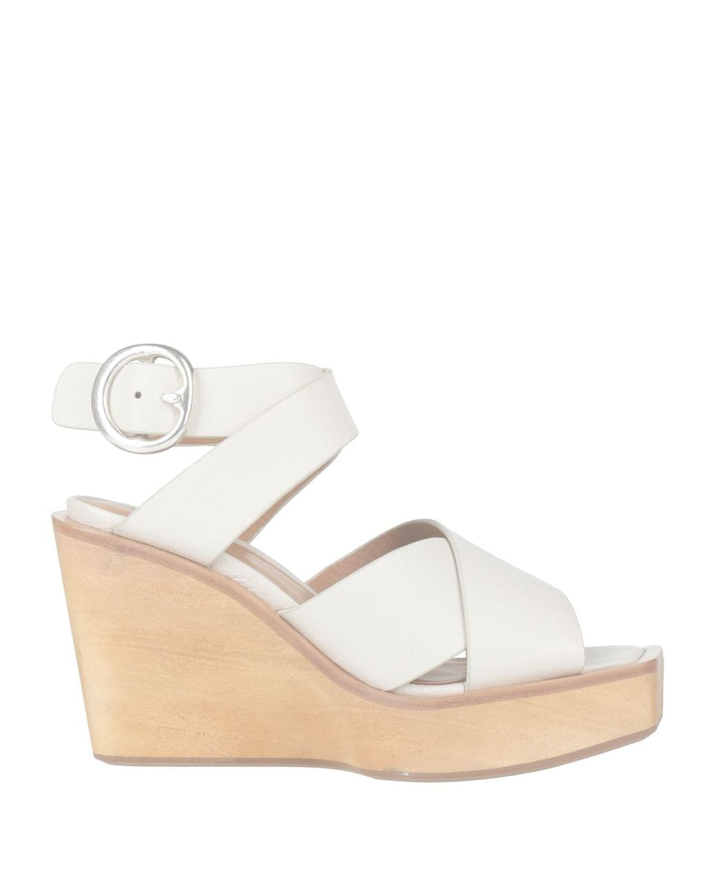 Sandals, leather, solid color, no appliqués, buckle fastening, round toe, wedge, leather lining, rubber sole, contains non-textile parts of animal origin , Color: Off white , Size: 8.5