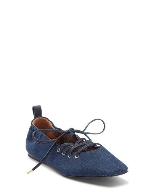 Metal grommets and slender laces add an edgy aesthetic to a square-toe ballet flat featuring an OrthoLite® footbed and elasticized heel collar. Lace-up style OrthoLite footbed Leather upper, lining and sole Imported Color: blue