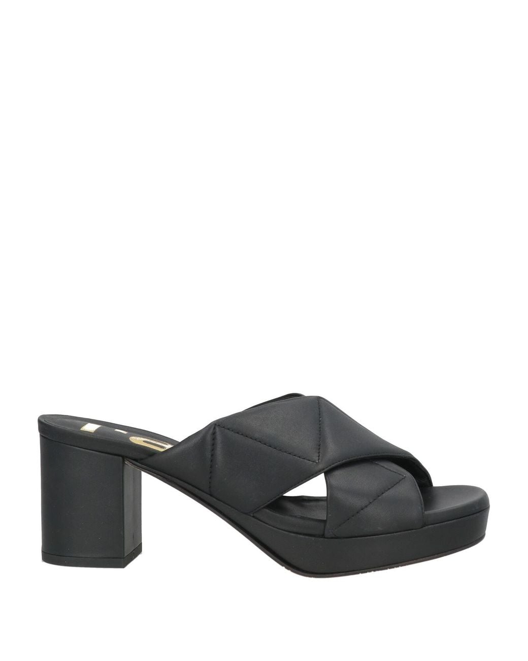 Sandals, leather, quilted, solid color, no appliqués, round toe, block heel, leather lining, rubber sole, contains non-textile parts of animal origin , Color: Black , Size: 11