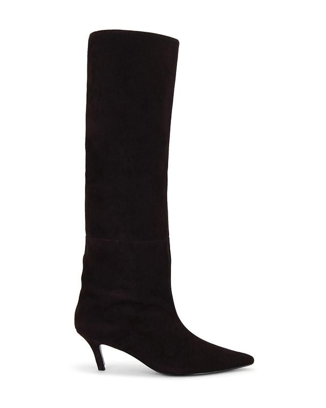 RAYE Liri Boot in Chocolate. - size 6.5 (also in 7.5, 8) RAYE Liri Boot in Chocolate. - size 6.5 (also in 7.5, 8) Suede upper with manmade sole. Made in China. Pull-on styling. Leather footbed and lining. Pointed toe with subtly slanted heel. Approx 65mm/ 2.5 inch heel Approx 425mm/ 16.75 inch shaft Shaft measures approx 17.27 in circumference. RAYE-WZ2730. RYSH1827 H24. Inspired by the word Reina, the Spanish word for queen, Raye is the queen bee shoe brand that will surely capture your heart. With an extensive assortment of silhouettes from heels to boots and sandals to flats, Raye has that perfect something for everyone. Color: black