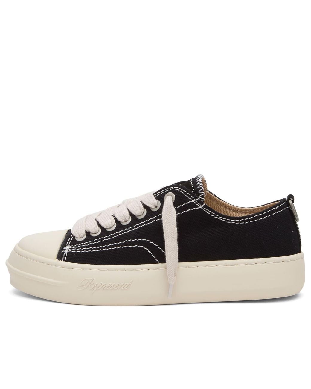 The newest addition to the Represent footwear line up, the Rep-Cap sneakers have skate park style in mind. Crafted with a canvas upper that’s detailed with contrast stitching, an oversized rubber outsole leads all the way up to the toe cap. Canvas Upper, Lace Closure, Rubber Outsole, Style Code: MLM100788-01, Shop All Men’s Represent Sneakers, Shop All Men’s Sneakers. Represent Men's Rep-Cap Sneaker in Jet Black, Size UK 6