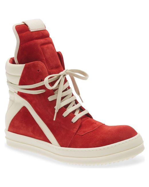 An ultrahigh tongue and padded collar bring style and coverage to this supple suede high-top sneaker crafted in Italy with a perforated toe for breathability. Color: red