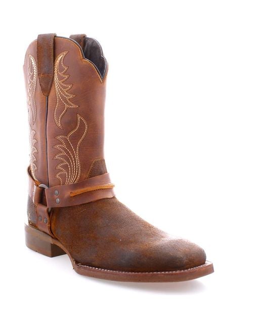 Saga is a square-toed boot that blends timeless Western charm with modern durability, making it a standout choice for any man. Made from premium leather and suede with an oiled finish, it's designed to last with its sturdy craftsmanship. The detailed lining adds a touch of sophistication to its rugged appeal, while the ankle harness and metal ring complete its classic Western vibe. Perfect for those who want a bold, stylish look with long-lasting quality. Color: brown