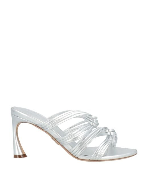 Sandals, leather, metallic, solid color, no appliqués, round toe, virgule heel, leather lining, leather sole, contains non-textile parts of animal origin , Color: Silver , Size: 11