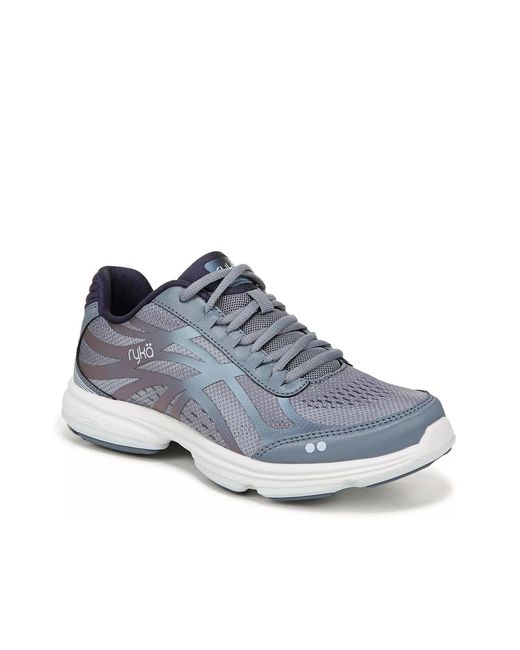 Make your walks more comfortable and stylish with the Ryka Devotion Plus 3 walking shoe. Iridescent flex gear overlays highlight the mesh-combined upper while the full-length Re-Zorb platform resists impacts in this lace-up shoe. Color: blue