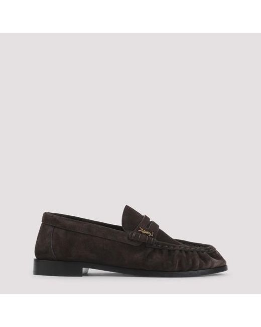 Saint Laurent Testa di Moro Brown Suede Leather Le Loafer Loafers. Pure testa di moro suede leather loafers, round toe with embossed stitching, top penny slot, side gold-tone metallic signature YSL logo, slip-on style, leather sole. Color: black