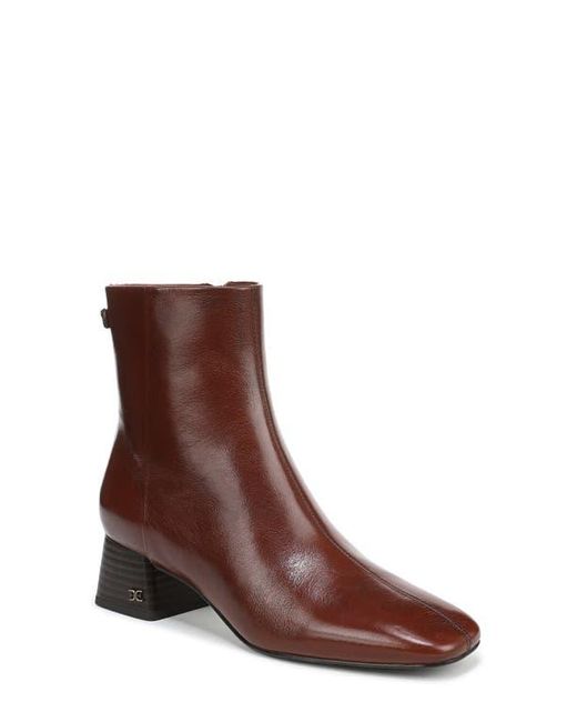 Signature logo hardware details the heel counter of a luxe bootie balanced by a squared-off toe and stacked block heel. 1 3/4" heel 6" shaft Side zip closure Leather upper/synthetic lining and sole Imported