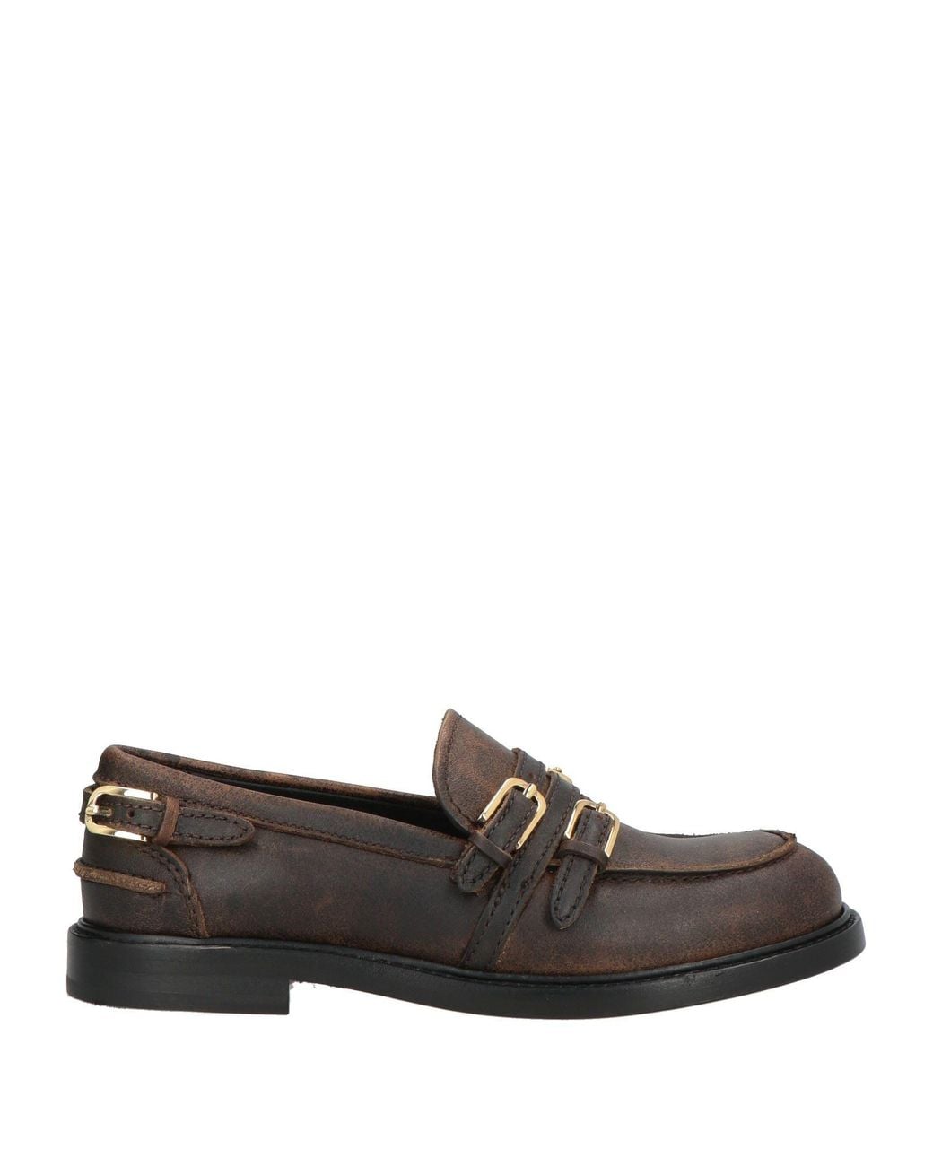 Shiny Leather Buckled Loafers - Brown