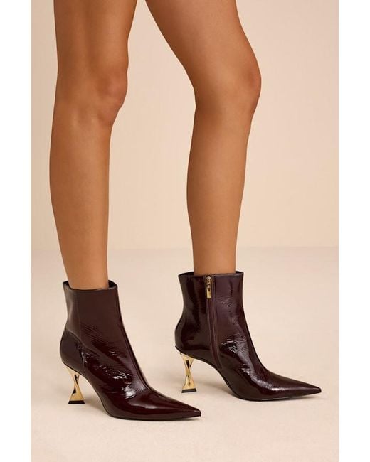 - Elisha Maplewood Patent Pointed-Toe Ankle Booties